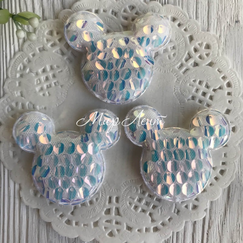 Аплікація Міккі тканинна з паєткою, 5,7х5 см, білий, шт.