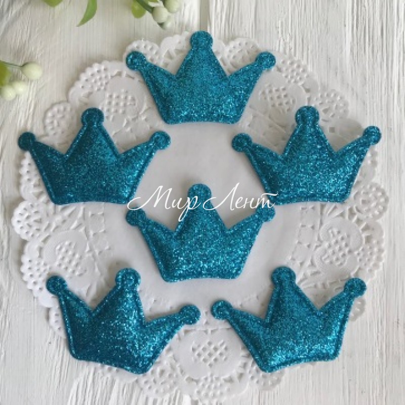 Аплікація/патч, корона (гліттер), 2,2 х 3,0 см, бірюзовий, шт.