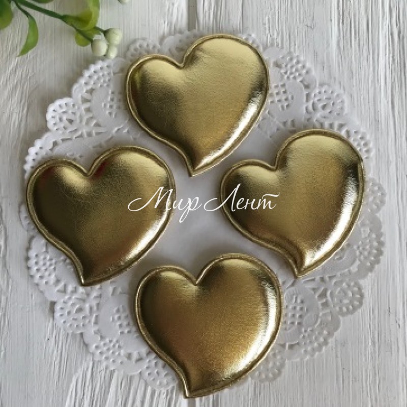 Аплікація/патч, серце (екошкіра), 4,7 см, золото