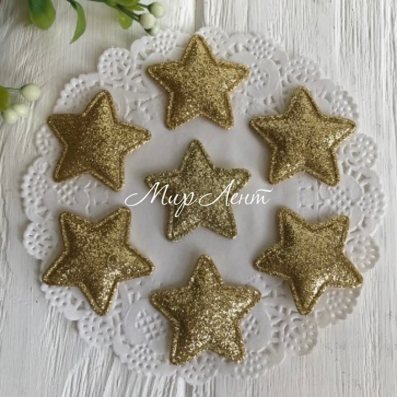 Аплікація/патч, зірочка (гліттер), 3,5 см, золото