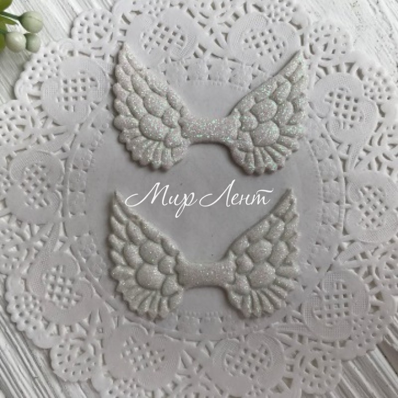 Аплікація крильця з глітером, 4,8 х3, 5 см, білий, шт.