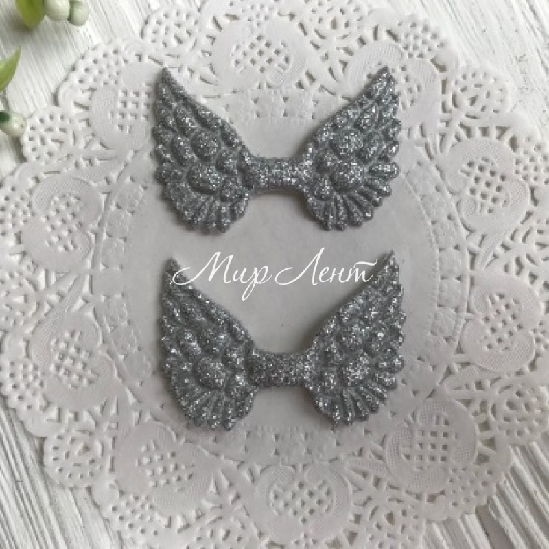 Аплікація крильця з глітером, 4,8 х3, 5 см, срібло, шт.