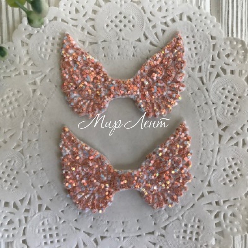 Аплікація крильця з lux паєтками, 3х5 см, персиковий, шт.