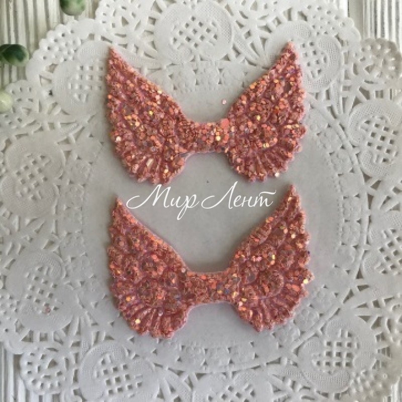 Аплікація крильця з lux паєтками, 3х5 см, пудровий, шт.