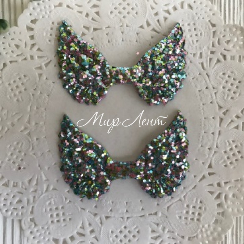 Аплікація крильця з паєтками, 3х5 см, м'ятно-рожевий, шт.