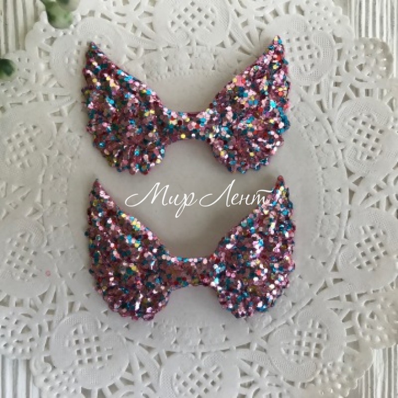 Аплікація крильця з паєтками, 3х5 см, рожевий, шт.
