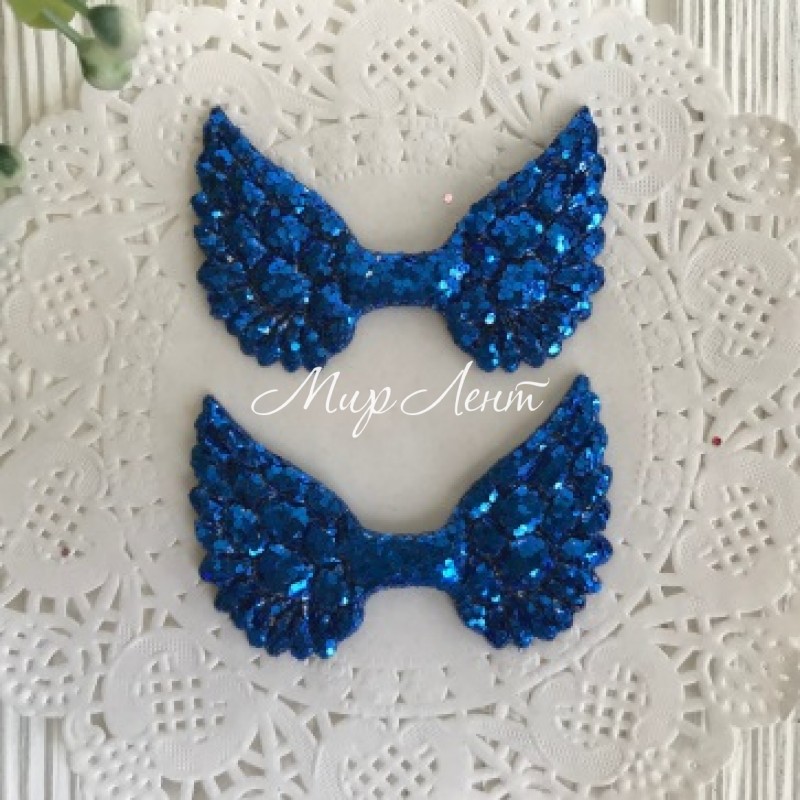 Аплікація крильця з паєтками, 3х5 см, темно-синій, шт.