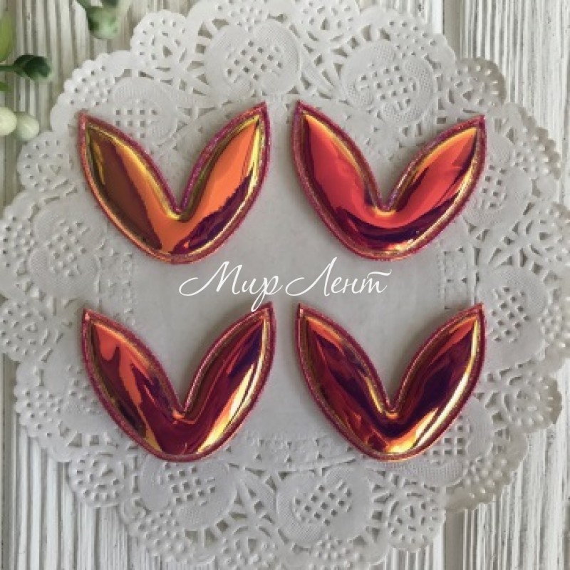 Аплікація лакові вушка, 3х3, 5 см, яскраво-рожевий хамелеон, шт.