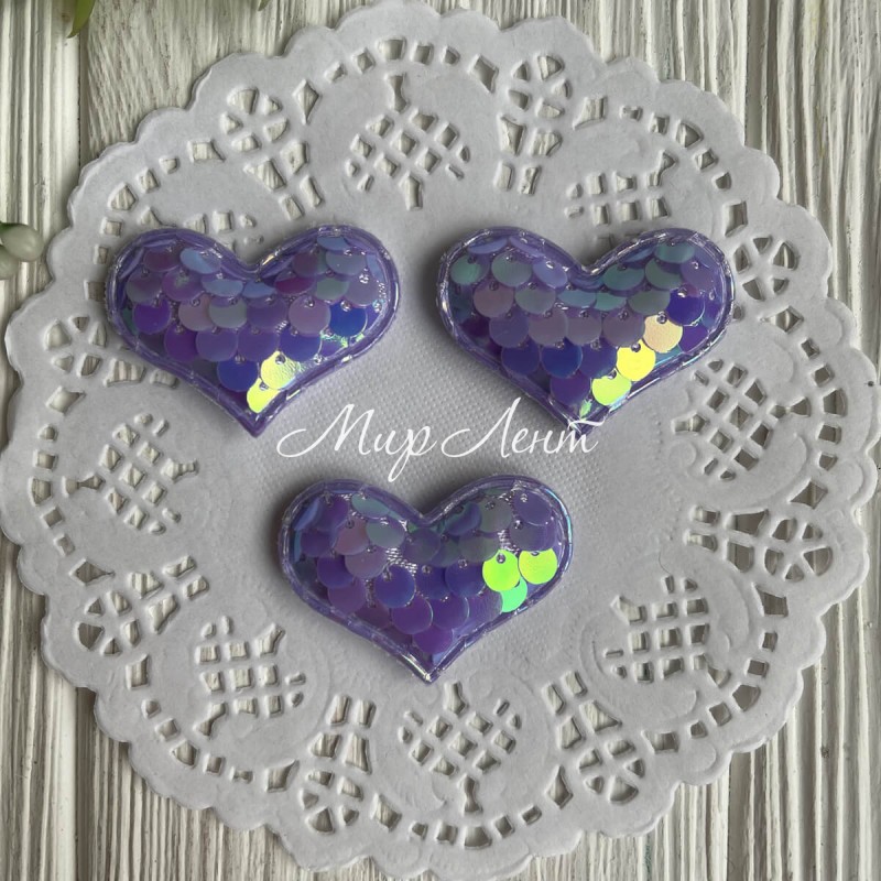 Аплікація серце з паєтками, 3,7х3,5 см, лілова, шт.