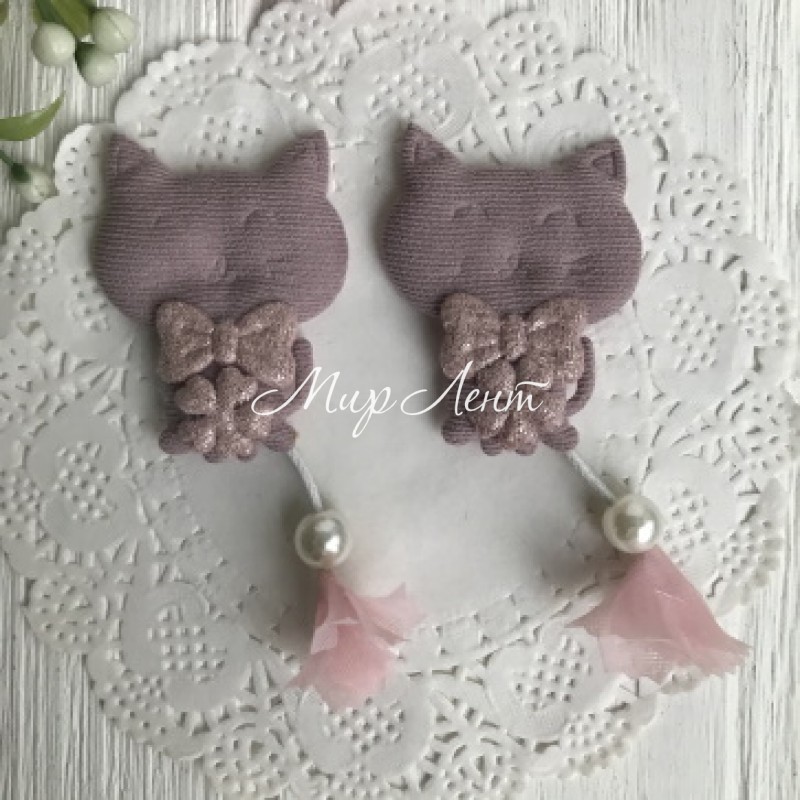Аплікація тканинна котик із бантом, 4,5 см, сірий, шт.