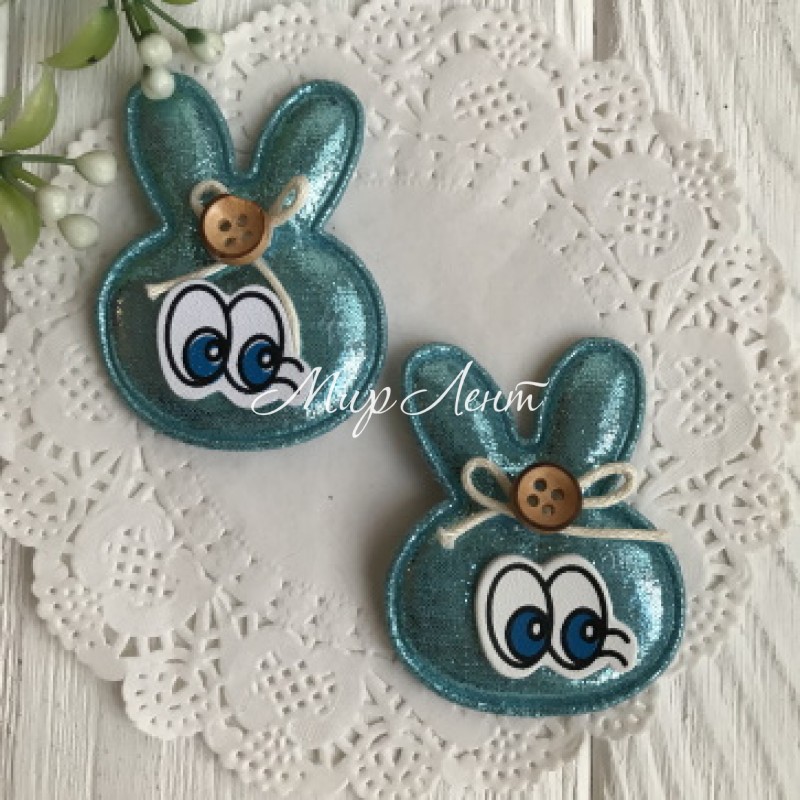 Аплікація тканинна кролик з вічками, 5х4 см, бірюзовий, шт.