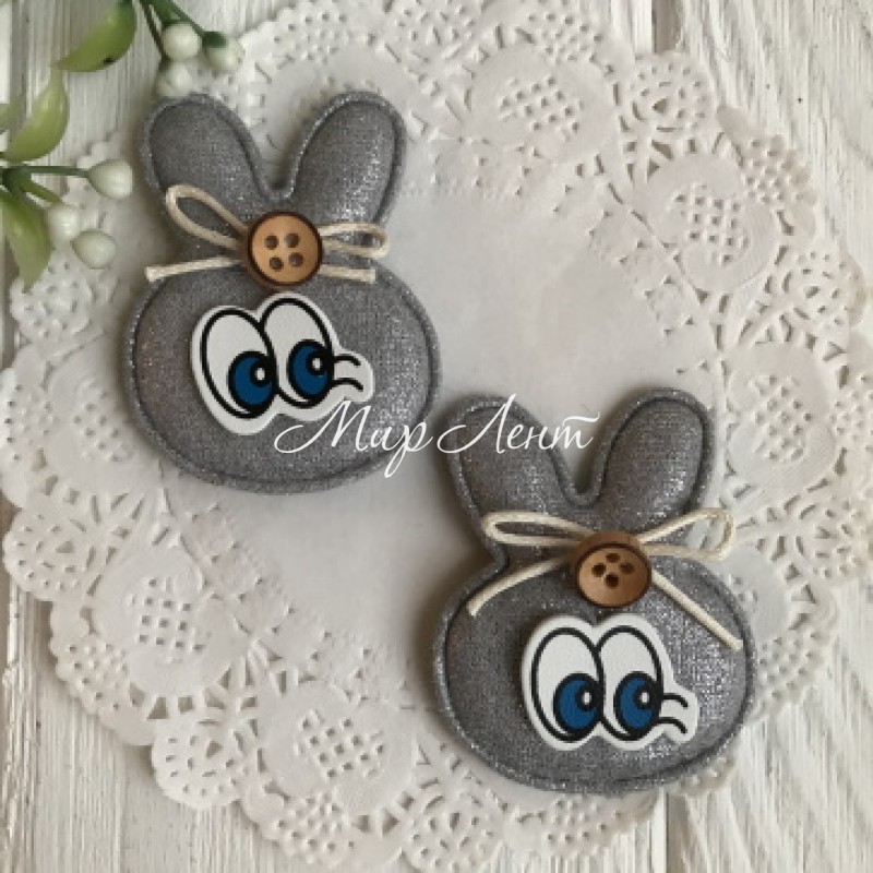 Аплікація тканинна кролик з вічками, 5х4 см, сірий, шт.