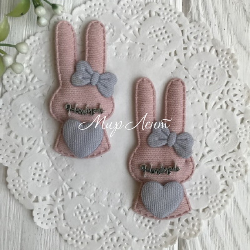 Аплікація тканинна зайчик із серцем, 6х2,8 см, пудровий, шт.