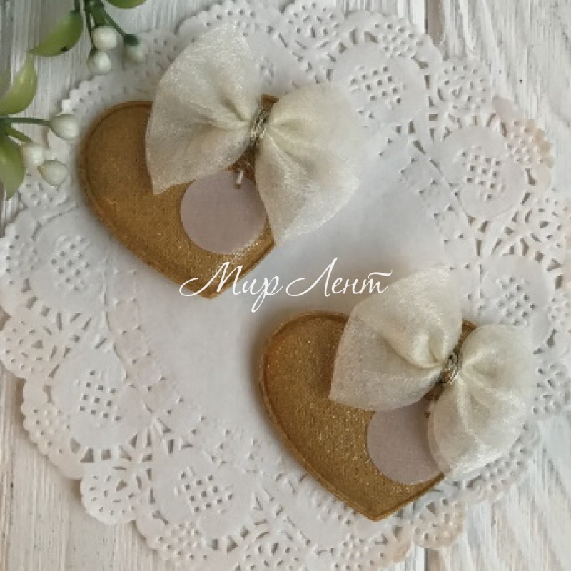 Аплікація тканинна серце з бантом, 4,5х4 см, гірчичний, шт.