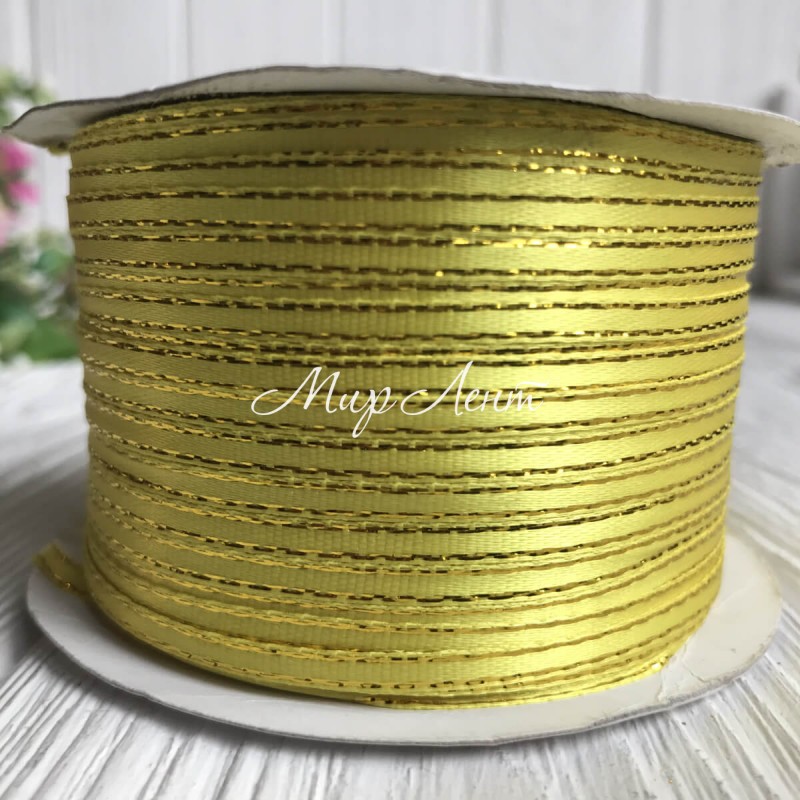 Атлас 0,3 см люрекс золото жовтий рулон 225 м