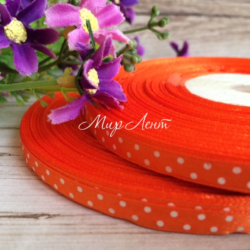 Атлас 0,6 см горох, оранжевий рулон 45 м