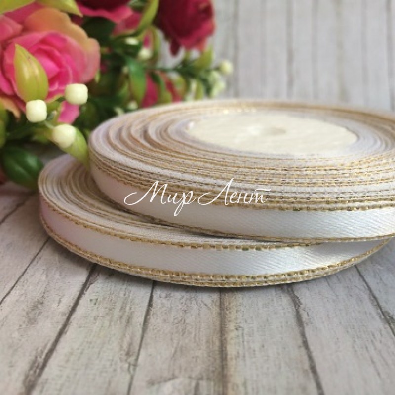 Атлас 0,6 см люрекс золото, білий, рулон 33 м