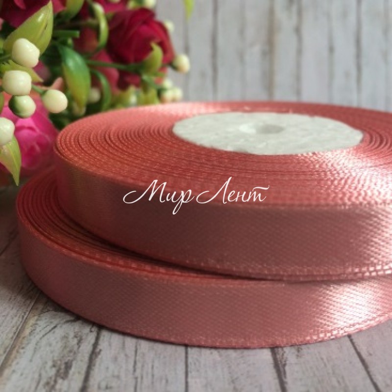Атлас 0,9 см, бежево-рожевий, рулон 33 м