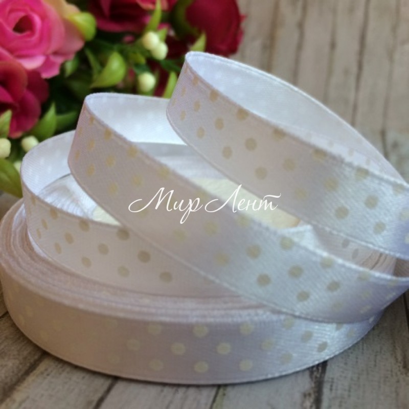 Атлас горох 0,9 см, білий, рулон 45 м