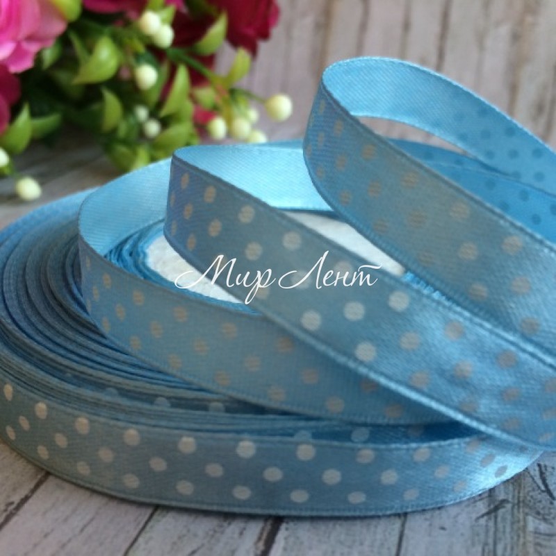 Атлас 0,9 см горох, блакитний, рулон 45 м