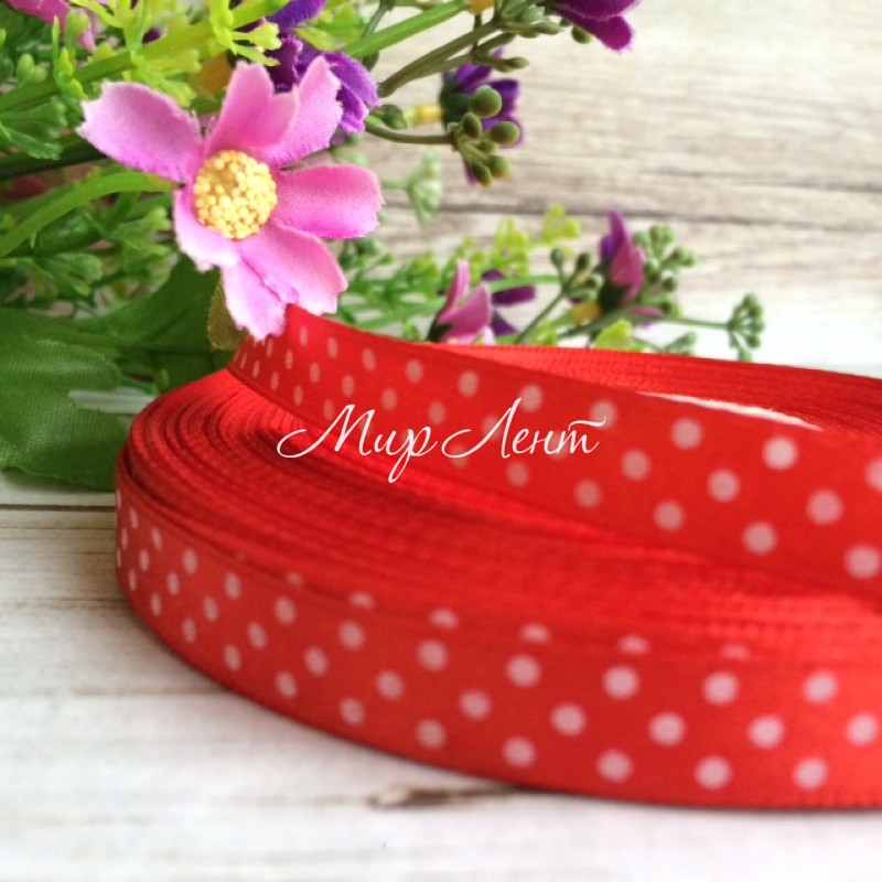 Атлас горох 0,9 см, червоний, рулон 45 м