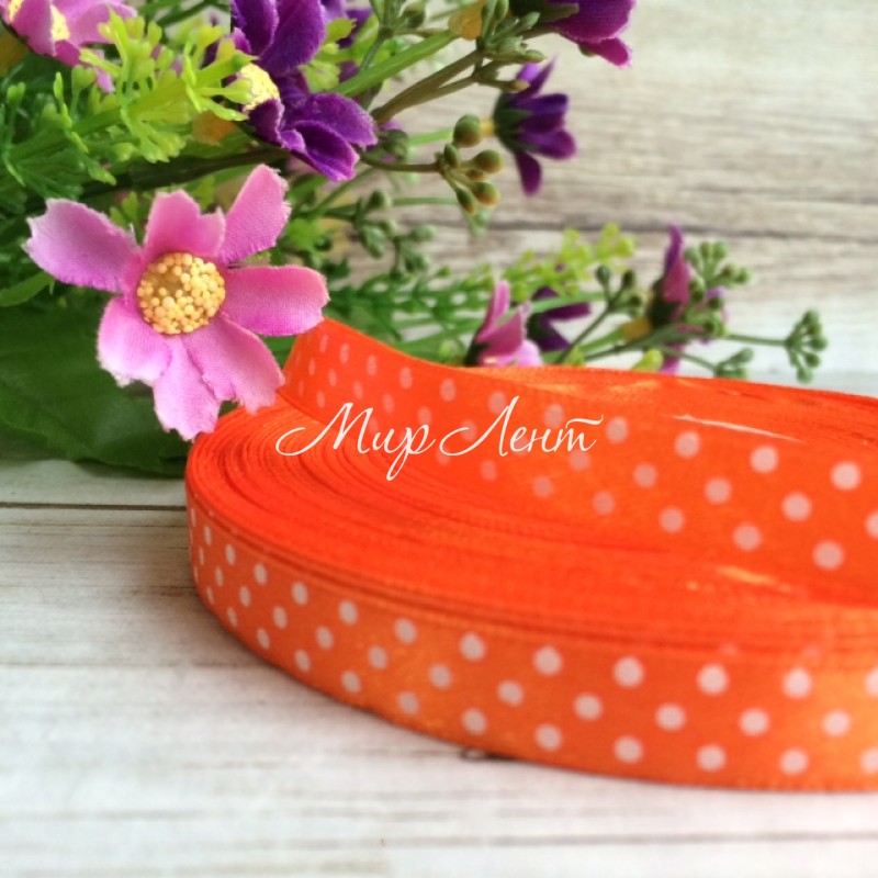 Атлас 0,9 см горох, помаранчевий рулон 45 м