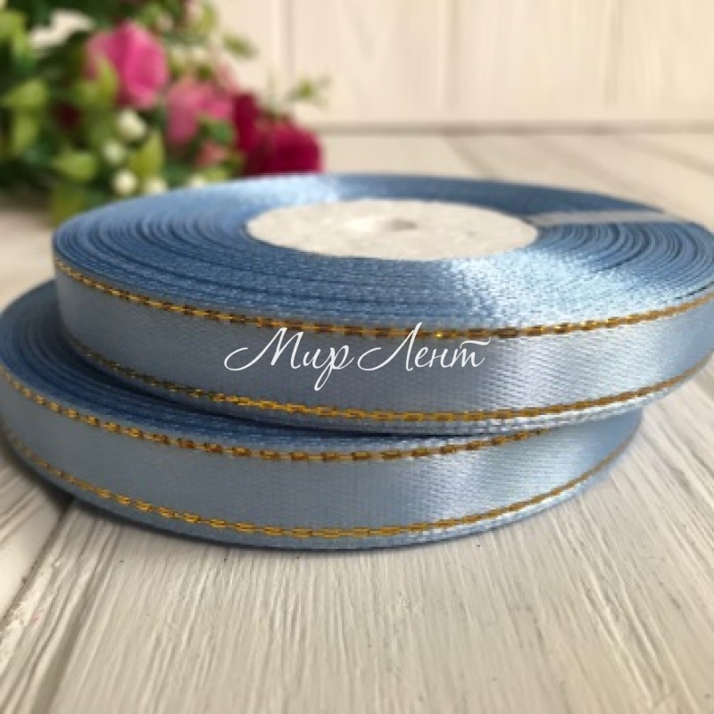 Атлас 0,9 см люрекс золото, блакитний, рулон 33 м