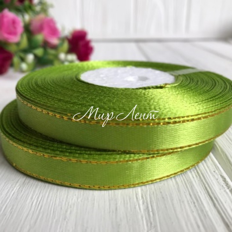 Атлас 0,9 см люрекс золото оливковий рулон 33 м