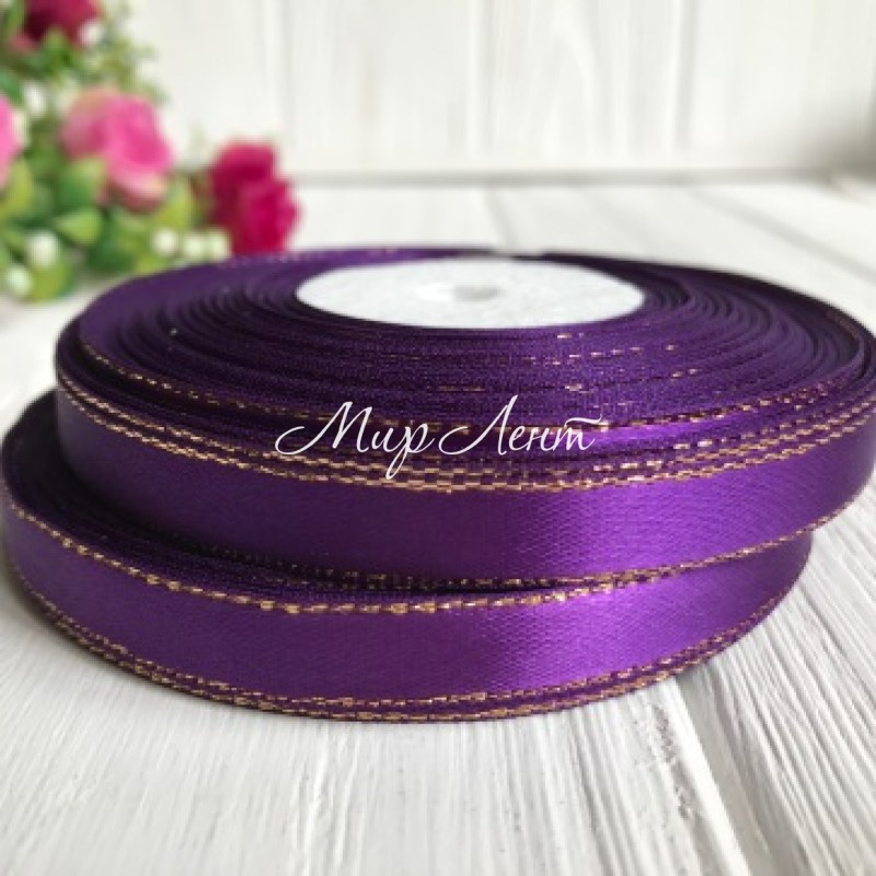 Атлас 0,9 см люрекс золото, темно-фіолетовий, рулон 33 м