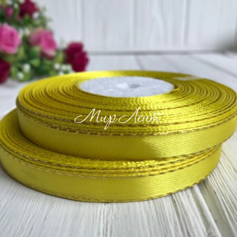 Атлас 0,9 см люрекс золото жовтий рулон 33 м
