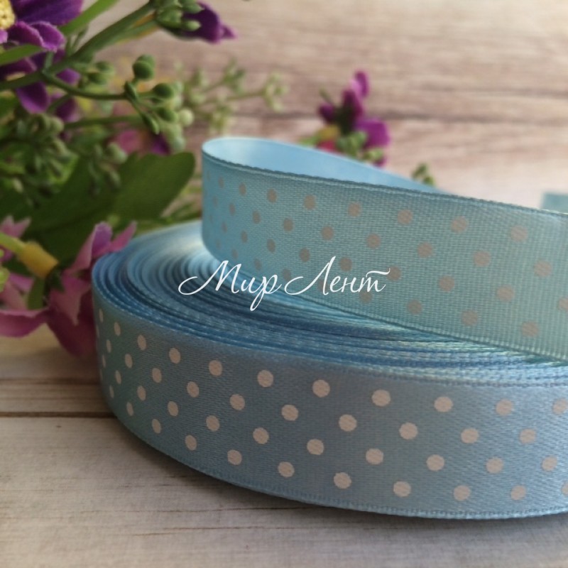 Атлас 1,5 см горох, голубой, рулон 45 м
