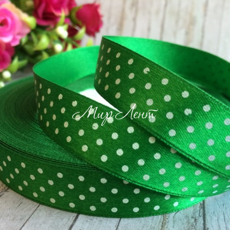 Атлас 1,5 см горох, зеленый, рулон 45 м
