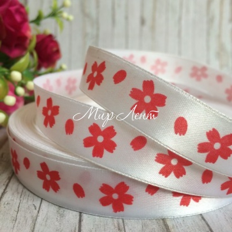 - Модель: Атлас 1,5 см, большой цветочек, белый с красным