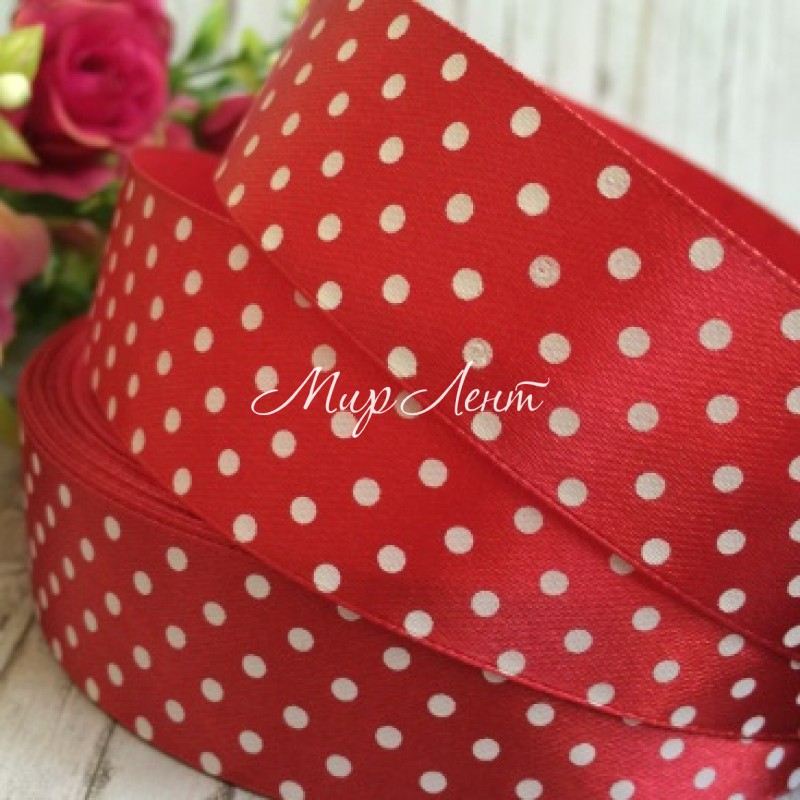 Атлас 2,5 см горох, бургунді