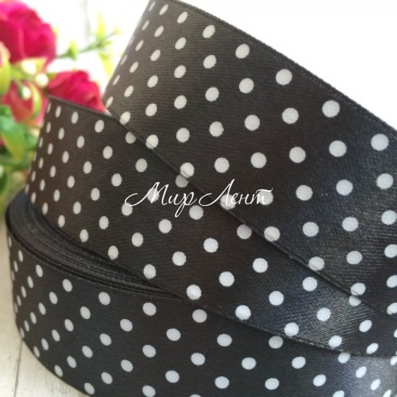 Атлас горох 2,5 см, чорно-білий