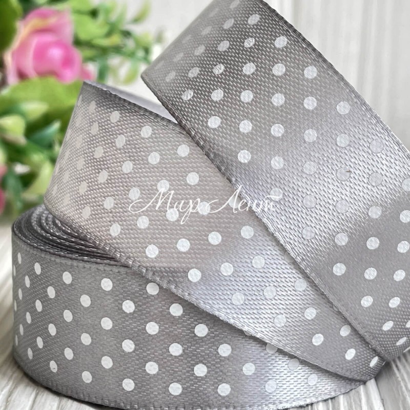 Атлас 2,5 см кольоровий горох, мікс на рожевому, м