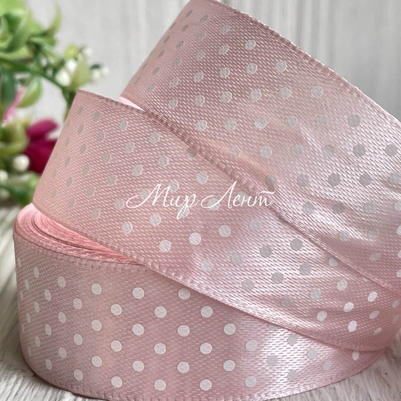 Атлас 2,5 см горох, ванільно-пудровий, метр