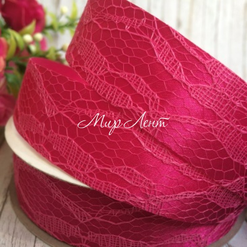 Атлас 2,5 см, мереживо, яскраво-зелений