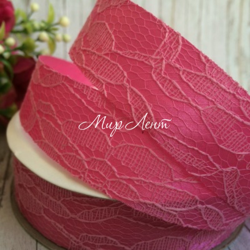 Атлас 2,5 см, мереживо, світло-малиновий