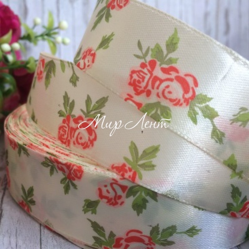 Атлас 2,5 см, трояндочка, біло-жовтогаряча