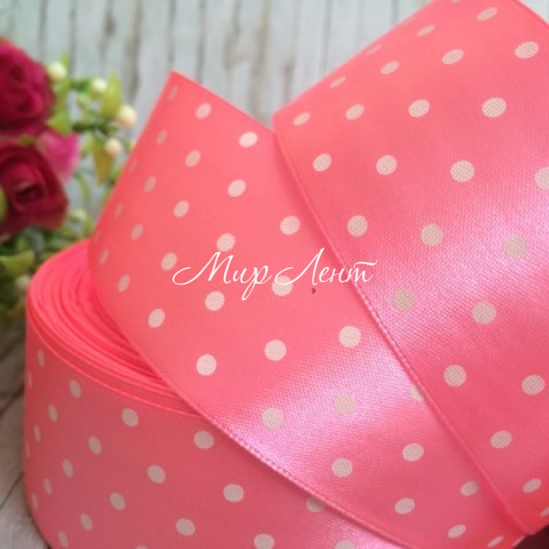 Атлас 4 см горох, яскраво-рожевий, метр