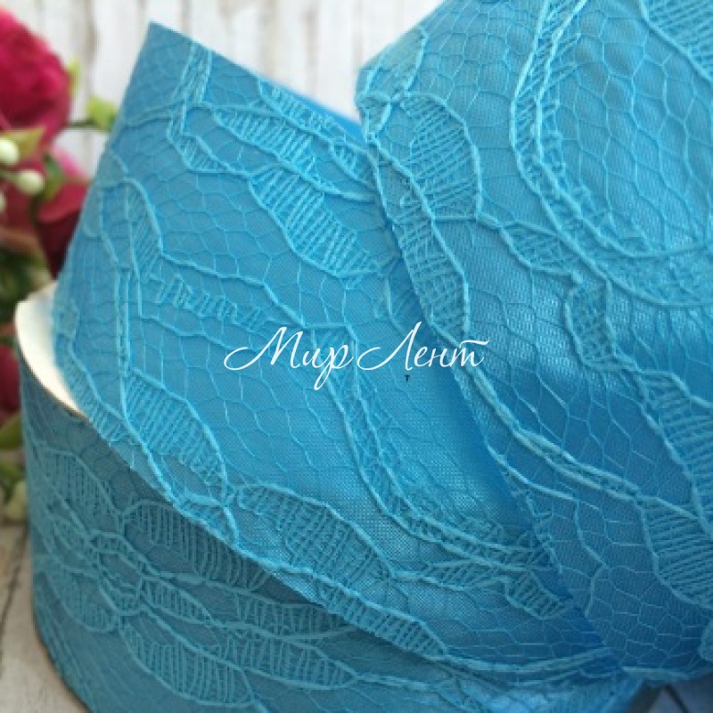 Атлас 4 см, мереживо, світло-бірюзовий