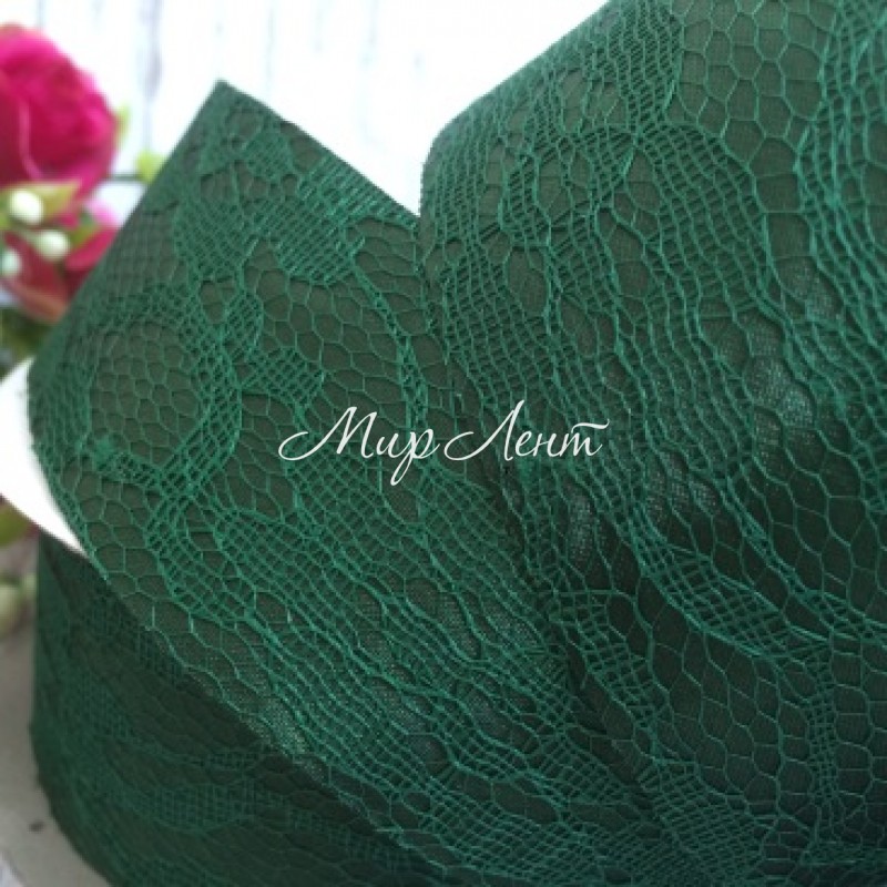Атлас 4 см, мереживо, темно-зелений