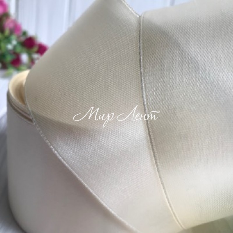 Атлас 4 см, молочний, метр