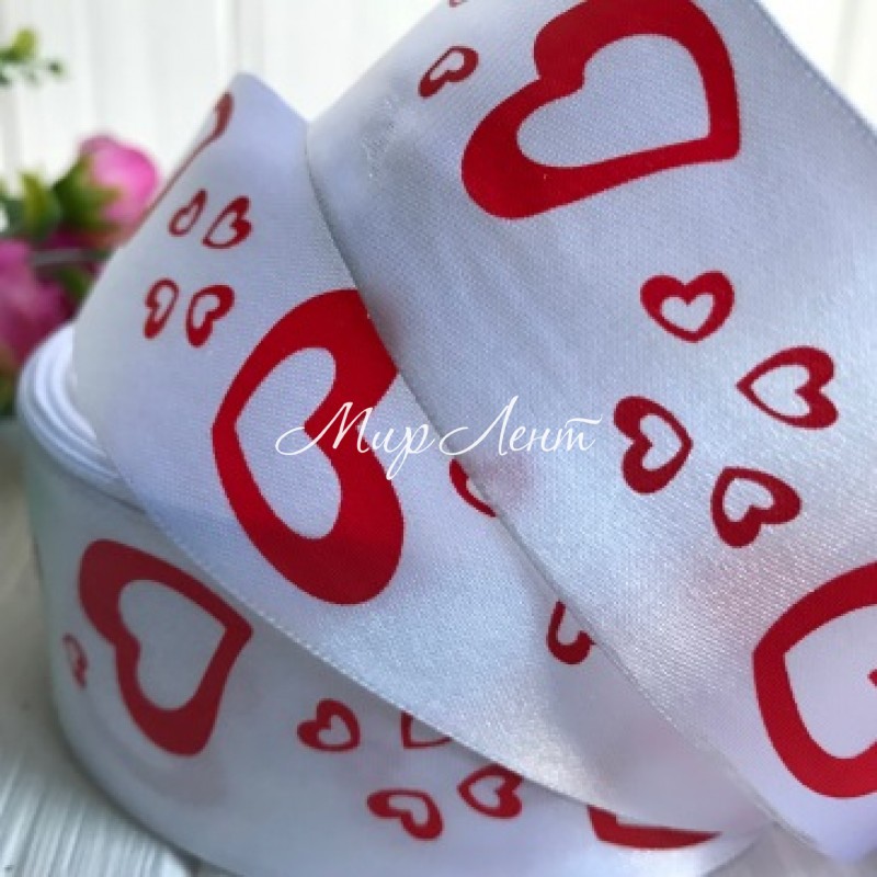 - Модель: Атлас 4 см, сердечка большие, белый с красным, рулон 45 м
