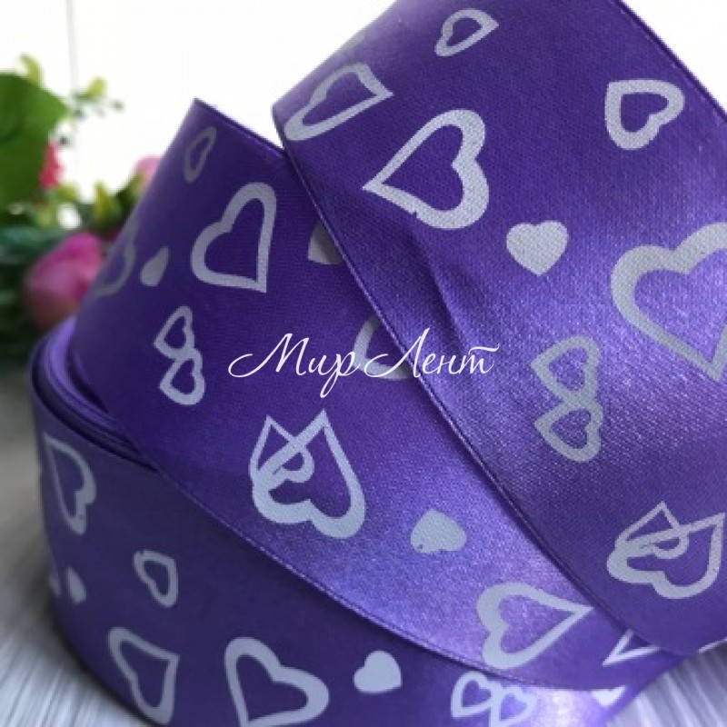 - Модель: Атлас 4 см, сердечка маленькие, лиловый, рулон 45 м