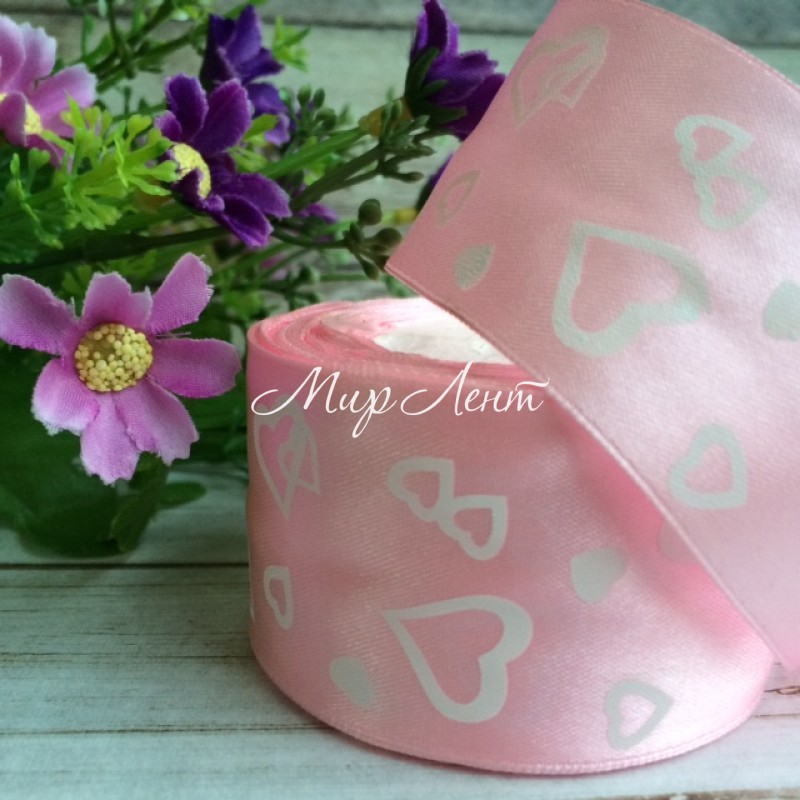 - Модель: Атлас 4 см, сердечка маленькие, светло-розовый, рулон 45 м