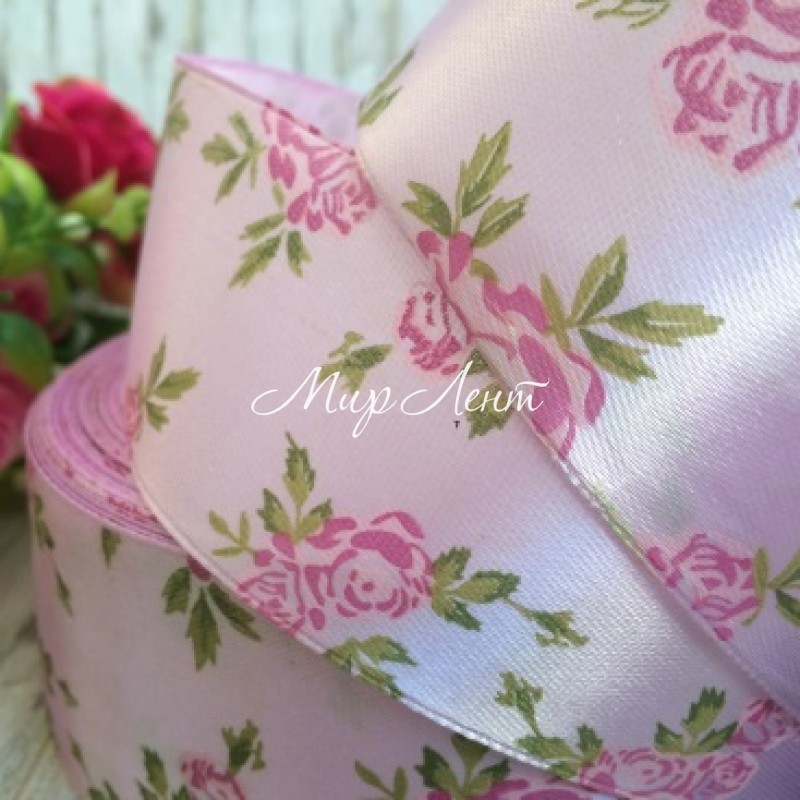 Атлас 5 см, бежево-рожевий, рулон 33 м