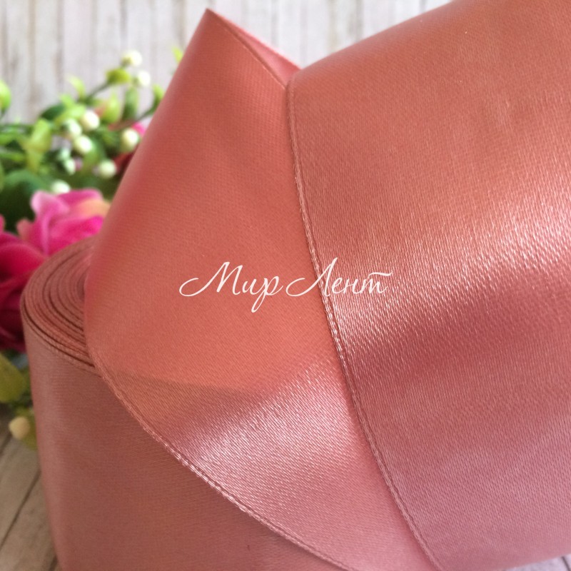 Атлас 5 см, бежево-рожевий, рулон 33 м