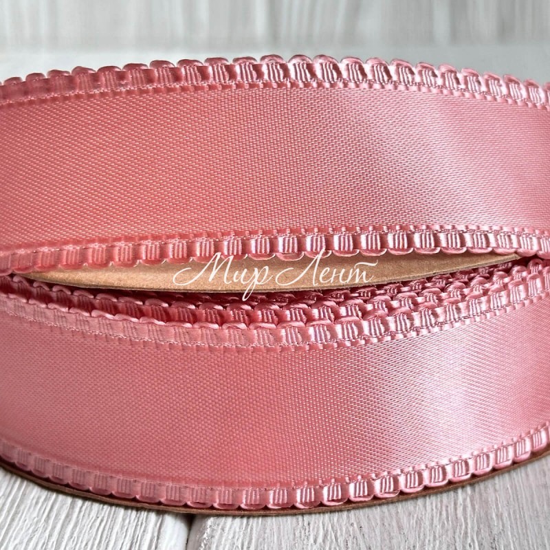 Атлас двосторонній з кантом, 2,5 см, пудровий, метр